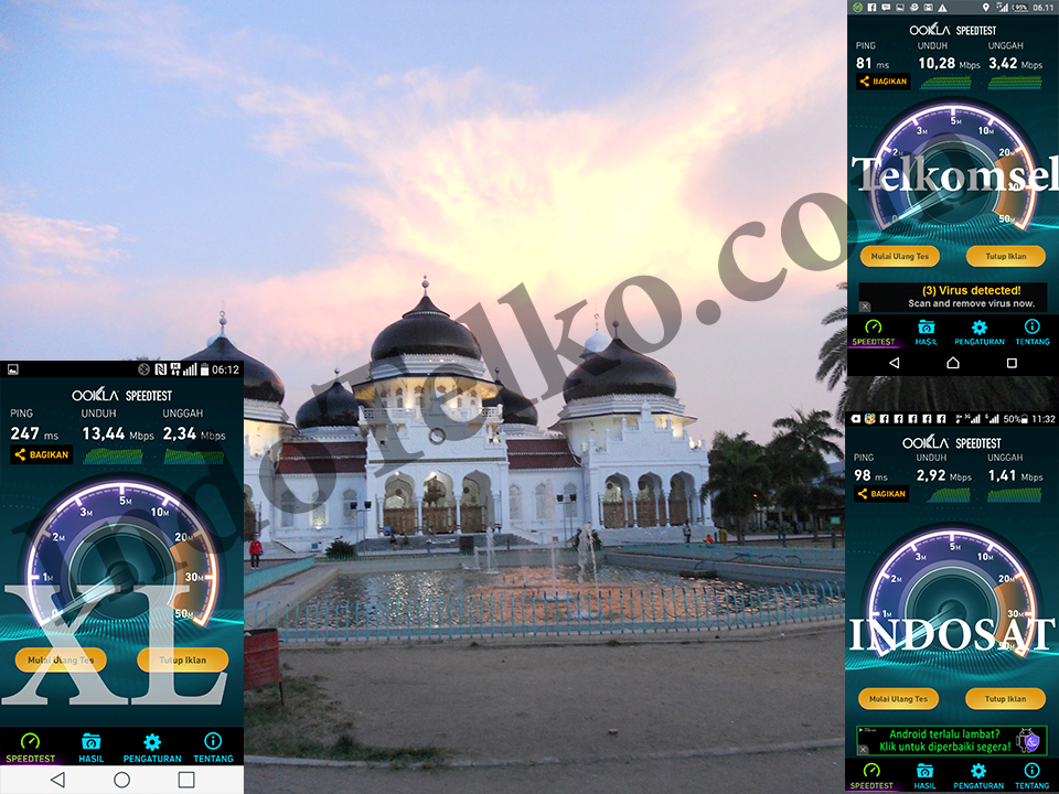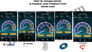 Tim uji jaringan Indotelko bersama indiTOURIST.com kembali berkesempatan melakukan uji coba jaringan di Propinsi Nanggroe Aceh Darussalam khususnya kota Banda Aceh. Hasilnya, XL mampu unjuk gigi dengan jaringan kuatnya, sementara Telkomsel tergolong konsisten di beberapa daerah, sedang Indosat tercecer dan kedodoran, tertinggal satu langkah dari XL dan Telkomsel. Akan tetapi Three dan Smartfren tak bisa berbuat banyak, pasrah dengan kecepatan jaringan yang sangat minim.