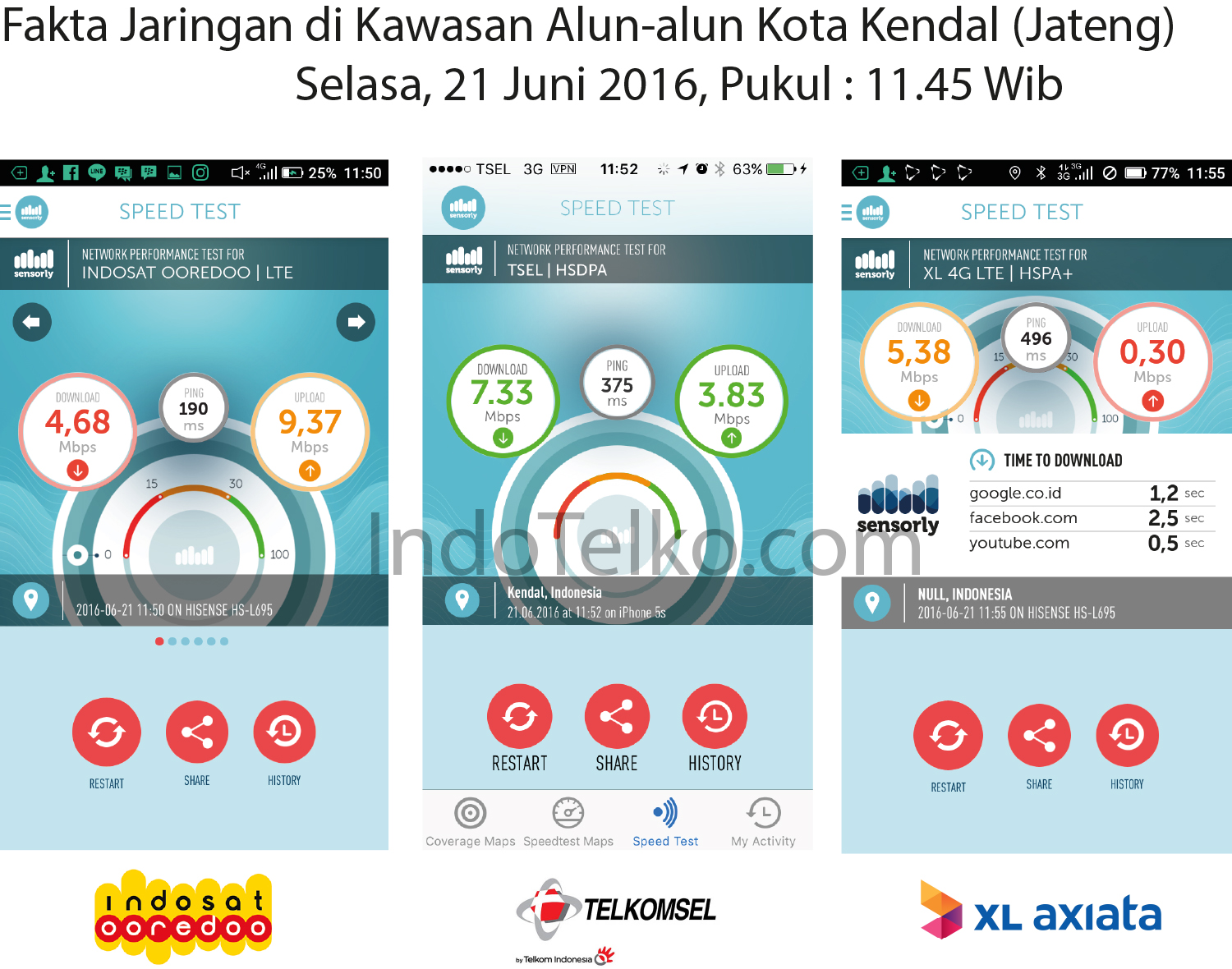 Beberapa hal yang bisa dijadikan kesimpulan dari hasil uji di Alun-alun kota Kendal kali ini adalah bahwa fakta menunjukkan hanya jaringan 4G Indosat yang bisa dinikmati masyarakat Kendal dan juga para pemudik, sedangkan Telkomsel dan XL hanya mampu memberikan layanan 3G. Selain itu, fakta lainnya adalah kekuatan jaringan Telkomsel paling cepat ketimbang XL dan Indosat.(sg)