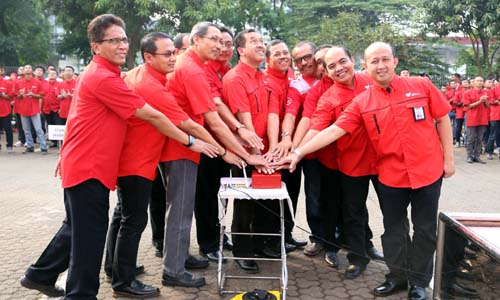 Awaluddin memimpin apel siaga didamping Direktur Jaringan Telkom Abdus Somad Arief, EVP Telkom Regional II Prasabri Pesti, dan EGM Telkom DBS Yusron Hariyadi.