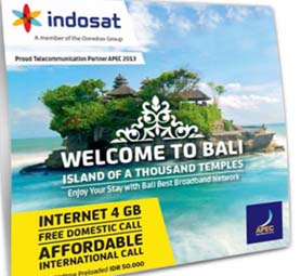 Kartu Indosat APEC hadir dengan paket menelpon, SMS dan data yang sangat menarik, untuk menunjang kegiatan dan aktifitas seluruh peserta APEC.