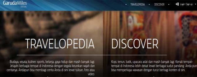 Platform “Garuda SocialMiles memiliki sejumlah fitur-fitur informatif seperti “Travelopedia”, yang merupakan “wikipedia” ribuan destinasi yang tersebar di seluruh Indonesia dari Sabang sampai Merauke , dimana pengguna bisa membaca info destinasi, memberi rating, review, share atau membagi destinasi pilihannya sendiri.
