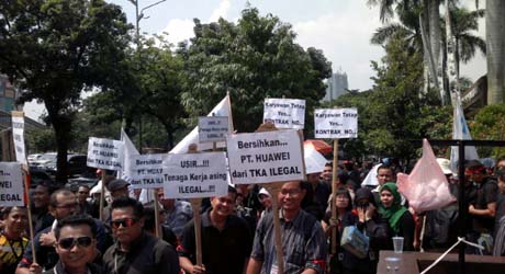 In fact, in 2012 the employees of PT Huawei Tech Investment (HTI) who are incorporated in the Huawei Tech Investment Labor Union (Sehati) have held a demonstration regarding the dominant amount of foreign workers from China. Reportedly there are 4,000 Huawei employees in Indonesia, and 1,300 of them are foreign workers in 2012.(es)