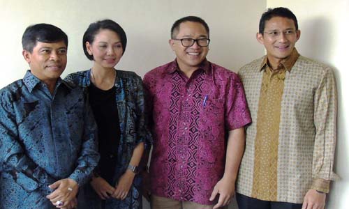 Alexander Rusli, (dua dari kanan), Sandiaga Uno, (paling kanan), dan Supriyatno, Ketua APPSI (paling kiri) setelah penandatanganan MoU, Jumat (2/10) (dok.Isat).