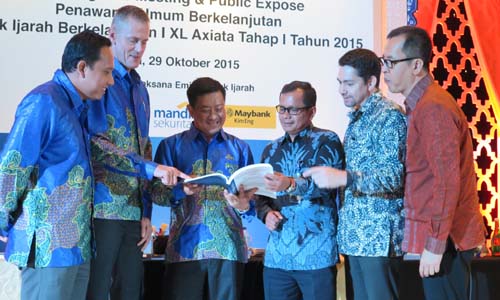 XL telah menunjuk PT CIMB Securities Indonesia, PT Mandiri Sekuritas dan PT Maybank Kim Eng Securities sebagai Penjamin Pelaksana Emisi Sukuk Ijarah. Masa penawaran awal (book building) Sukuk Ijarah ini akan dilakukan pada tanggal 29 Oktober - 12 November 2015.(id)