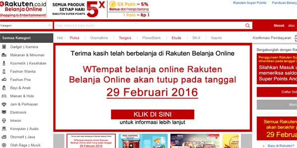 Dalam pengumuman resmi di situsnya dinyatakan Rakuten Belanja Online akan tutup pada tanggal 1 Maret 2016.