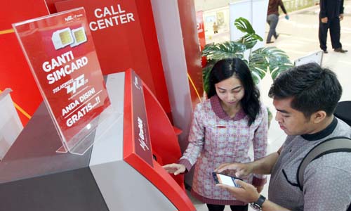 Pelanggan Telkomsel tengah isi ulang pulsa (dok)