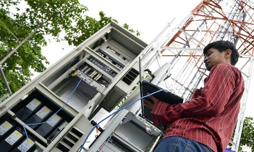 Teknisi di salah satu menara XL (dok)