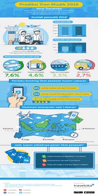 Agar mudik 2016 semakin nyaman, Traveloka mengimbau pemudik untuk memesan tiket pesawat sejak dini. “Kami menyarankan agar masyarakat memesan tiket pesawat pada H-30 hingga H-15 Lebaran karena harga tiket pesawat relatif lebih murah dan beragam promo masih banyak tersedia. Dengan memesan sejak dini, pemudik bisa menghemat tiket pesawat hingga 10%.” Berdasarkan data internal Traveloka, harga tiket pesawat pada periode H-7 Lebaran bisa meningkat hingga 2,7 kali lipat dari harga normal,” kata CEO Traveloka Ferry Unardi dalam rilisnya, kemarin.