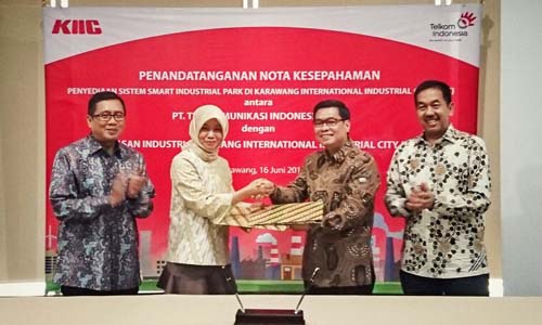 Hal itu terlihat dari penandatanganan Perjanjian Penyediaan Sistem Smart Industrial Park di KIIC yang dilakukan Executive General Manager Divisi Enterprise Service Telkom Siti Choiriana dan Direktur Kawasan KIIC Sanny Iskandar yang disaksikan oleh Direktur Enterprise & Business Service Telkom Muhammad Awaluddin, Kamis (16/6).