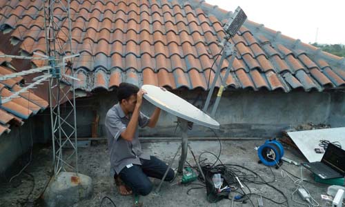 Teknisi tengah memasang VSAT untuk IndiHome Sky (dok)