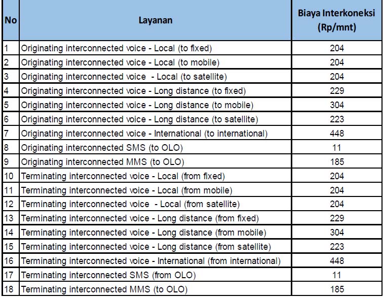 Proses perhitungan panjang sejak 2015 yang menggunakan payung hukum Peraturan Menteri Komunikasi dan Informatika Nomor 8 Tahun 2006 tentang Interkoneksi itu menghasilkan penurunan biaya interkoneksi secara rata-rata untuk 18 skenario panggilan dari layanan seluler sekitar 26%.