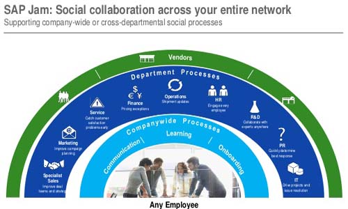 SAP Jam dapat membantu bisnis melalui kolaborasi sosial berakar pada nilai bisnis, dengan menyediakan platform terpusat berbasis cloud yang dapat membantu membuat perusahaan dapat menemukan dan berbagi informasi dengan lebih mudah, mengurangi waktu yang dibutuhkan bagian sales untuk mencapai kesepakatan penjualan, meningkatkan kecepatan orientasi karyawan baru dan mengurangi waktu respon dari organisasi pendukung.