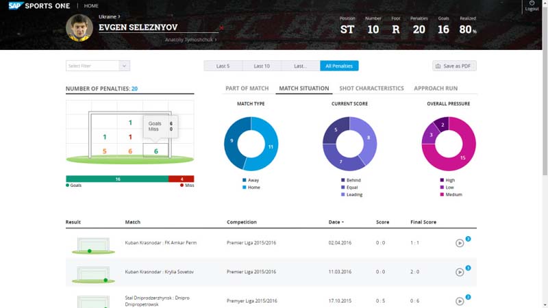 SAP Penalty Insights awalnya berdiri sebagai fitur informasi penalti yang merupakan bagian dari solusi SAP Sports One. Solusi ini dikembangkan bersama-sama oleh SAP dan German Football Association untuk Kejuaraan Sepakbola Eropa tahun 2016 untuk mentransformasi cara penggunaan data di dalam tim dan bagaimana mereka mempersiapkan diri untuk menghadapi pertandingan.