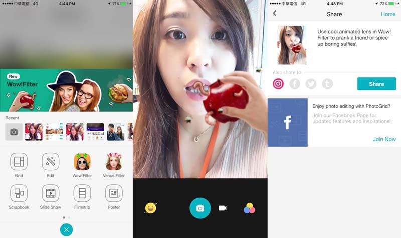 Versi terbaru PhotoGrid ini menghadirkan lebih banyak filter animasi untuk menyulap gambar biasa menjadi lebih “wow” dan berkesan. Di samping itu, generasi terbaru dari filter animasi ini dapat mendeteksi hingga empat wajah dalam satu jepretan.