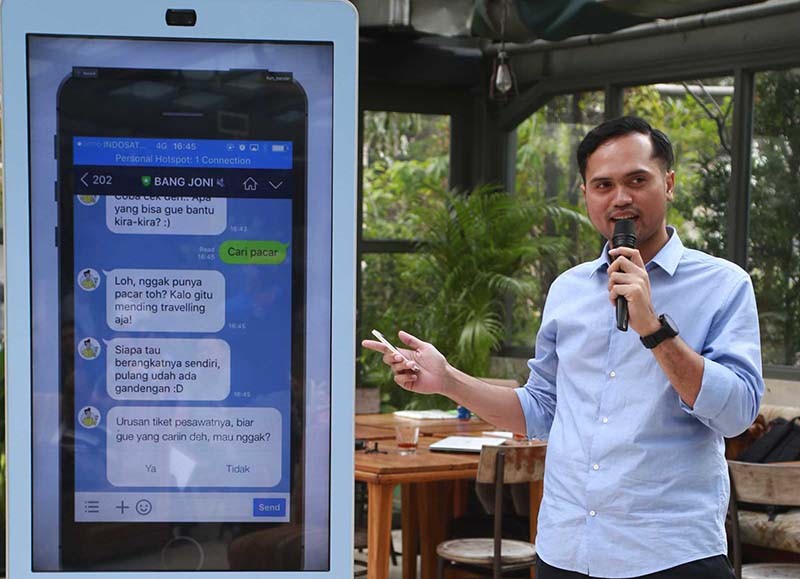 Ditambahkannya, perseroan mengembangkan Bang Joni untuk memberikan fungsi lebih jauh dari sekadar chatting. Bekerjasama dengan sederetan merchant terkemuka, Bang Joni sebagai pionir di industri chatbot komersil di Indonesia adalah teman yang dapat membantu memenuhi berbagai kebutuhan generasi muda dengan cara yang familiar dengan keseharian mereka, yaitu melalui chatting.