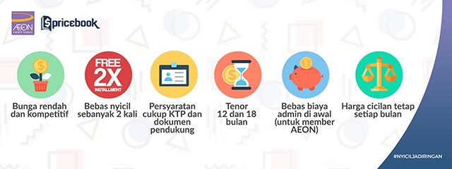 JAKARTA (IndoTelko) - PT. Pricebook Digital Indonesia bersama AEON Credit Service (ACS) mengadakan program Promo “Nyicil Jadi Ringan” tanpa kartu kredit dengan bebas 2x cicilan untuk berbagai tipe hape.