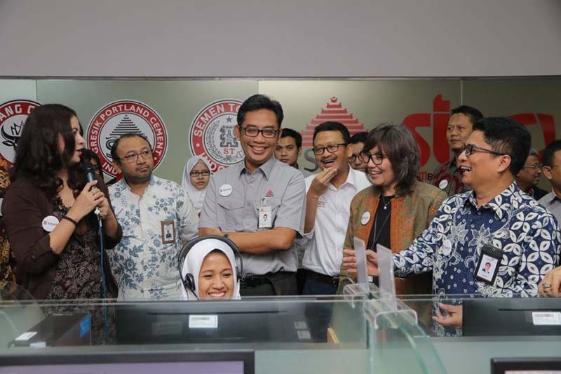 Manajemen Semen Indonesia dan Telkom ketika memantau agent care line beberapa waktu lalu (Foto:TLKM)