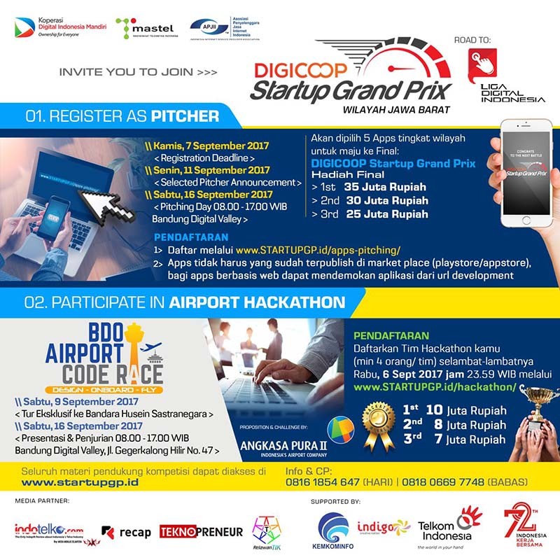 kompetisi untuk mendukung pengembangan ekosistem startup dan talent digital Indonesia ini didukung penuh oleh Angkasa Pura II (AP 2) dan Telkom.