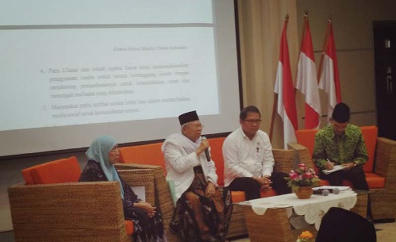 “Kebencian dan permusuhan itu malah marak melalui medsos ini. Jadi pengunaan medsos dengan merusak menimbulkan bahaya. Bahaya itu harus dihilangkan maka kami mengeluarkan fatwa bermuamalah medsos. Karena kita tidak mungkin menghindari medsos ini tapi bagaimana menggunakan medsos,” jelas Prof DR KH Ma’ruf Amin.