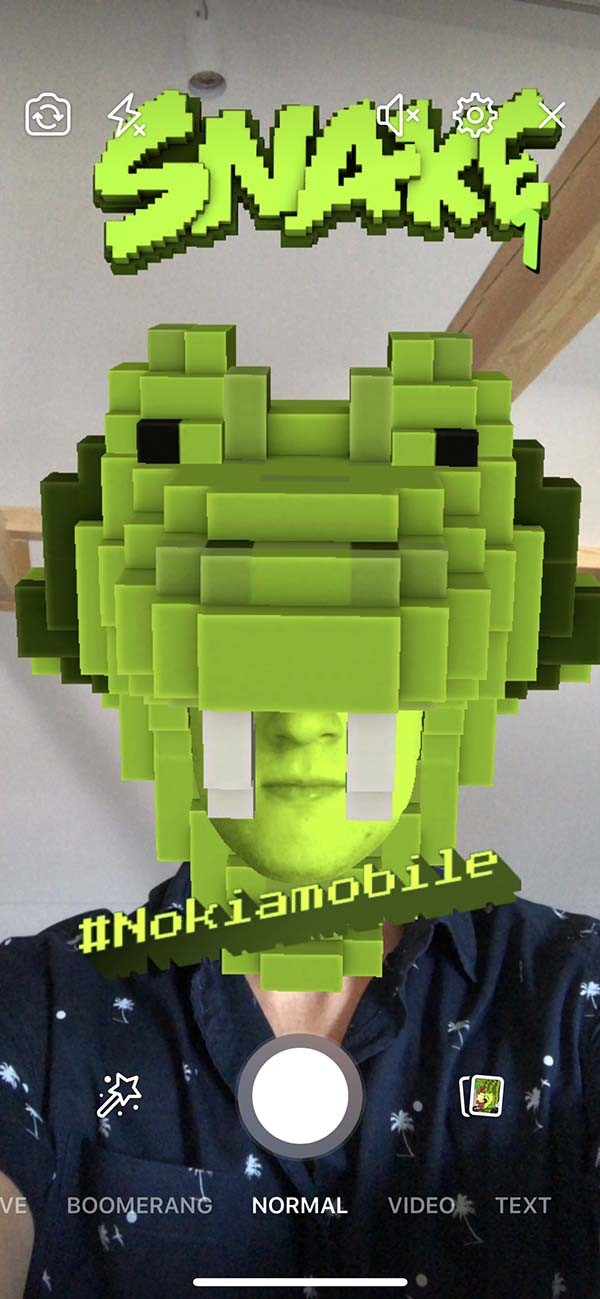 Sekarang pengalaman bermain menjadi lebih imersif karena para fans bisa menjadi ular itu sendiri dan memakan buah apel dengan menggunakan Facebook camera – dengan demikian HMD Global berhasil membawa ikon game interaktif klasik ke zaman AR yang modern.