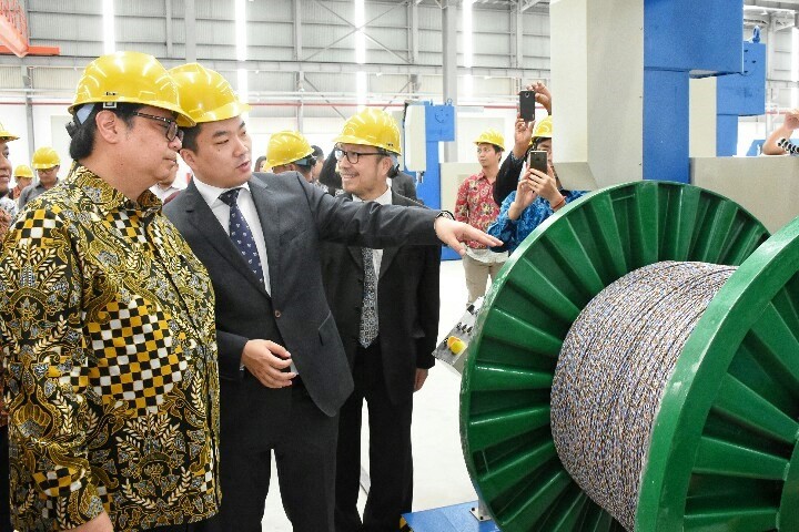 Menteri Perindustrian Airlangga Hartarto saat peresmian Pabrik Kabel Serat Optik PT. ZTT Cable Indonesia di Karawang, belum lama ini.(Foto:Kemenperin)