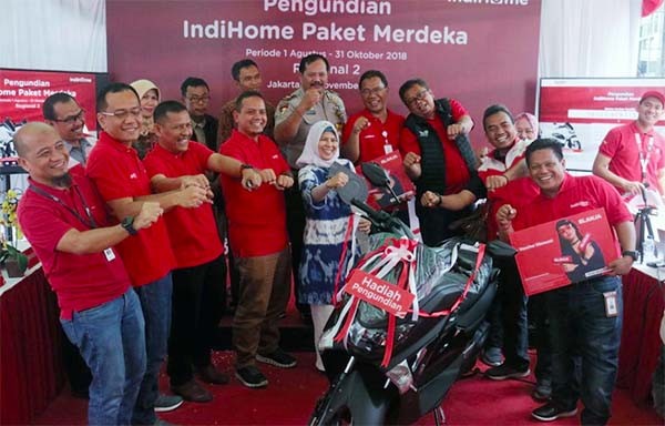JAKARTA (IndoTelko) - PT Telekomunikasi Indonesia Tbk (Telkom) mengundi pemenang Program Promo IndiHome Paket Merdeka di tujuh lokasi yaitu Medan, Jakarta, Bandung, Semarang, Surabaya, Balikpapan, dan Makassar secara serentak.