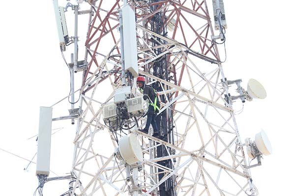Teknisi tengah memeriksa BTS milik operator seluler. Wacana revisi DNI untuk sektor TIK harus dihentikan.(dok)
