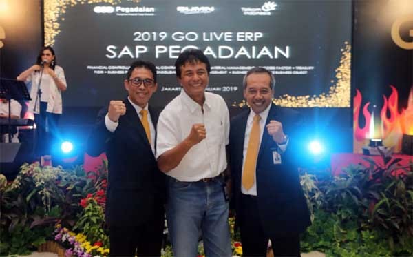Telkom telah melakukan seremoni Go Live ERP SAP Pegadaian di Kantor Pusat Pegadaian yang berlokasi di Kramat Raya, Jakarta Pusat, Rabu (2/1). Acara dihadiri oleh Direktur Teknologi Informasi dan Digital Pegadaian Teguh Wahyono, Executive Vice President Divisi Enterprise Service Telkom Judi Achmadi, dan Direktur Utama PT Sigma Metrasys Solution Refinaldi, yang merupakan anak usaha Telkom dalam penyediaan sistem SAP.