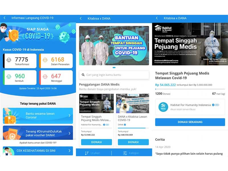 Mewujudkan #TempatSinggahPejuangMedis sebuah gerakan sinergis masyarakat luas, diperlukan dukungan platform berbasis teknologi digital yang mampu menjadi katalisator. Ini yang melahirkan kolaborasi Yayasan Habitat Kemanusiaan Indonesia dengan dompet digital Indonesia, Dana, yang telah siap dengan Siap Siaga COVID-19 – sebuah miniprogram di dalam apps Dana yang didedikasikan khusus untuk menggerakkan ekosistem masyarakat digital untuk bersatu, bersinergi, dan bahu-membahu melawan COVID-19.