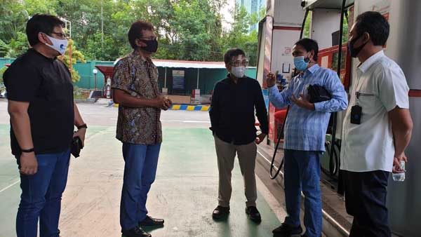 Kepala Pusat Data & Informasi Kementerian ESDM Agus Cahyono Adi didampingi Enterprise Project Director Telkom Judi Achmadi dan Director of Regional Marketing PT Pertamina Patra Niaga Jumali pada Jumat (11/9), berkunjung ke SPBU 34 12902 Gatot Subroto.