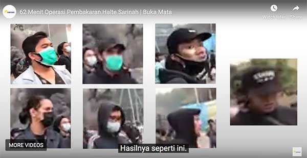 Video berjudul "62 Menit Operasi Pembakaran Halte Sarinah" itu menyajikan hasil investigasi berbasis Big Data diperkuat Machine Learning menggunakan Tensorflow untuk mencari pelaku-pelaku yang diduga kuat pelaku pembakaran Halte