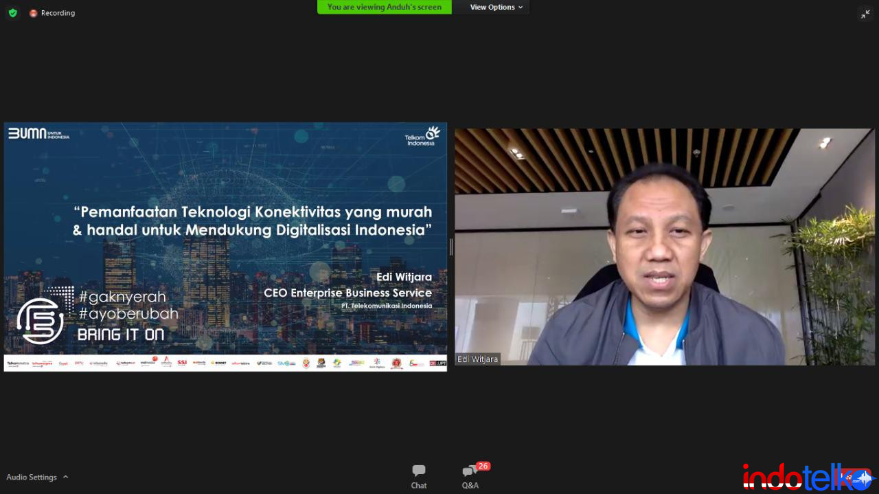 Dalam kegiatan Webinar Smart Utility yang diselenggarakan oleh Universitas Indonesia pada hari Kamis tanggal 17 Desember 2020 yang lalu yang bertemakan “Percepatan Digitalisasi Indonesia dengan Smart Utility Berbasis Konektivitas yang Murah dan Handal”, Direktur Enterprise & Business Services Telkom Indonesia Edi Witjara menyampaikan beberapa contoh penerapan digitalisasi yang telah dilakukan oleh Telkom untuk mendukung digitalisasi Indonesia, dimana salah satu fokusnya adalah penggunaan IoT.
