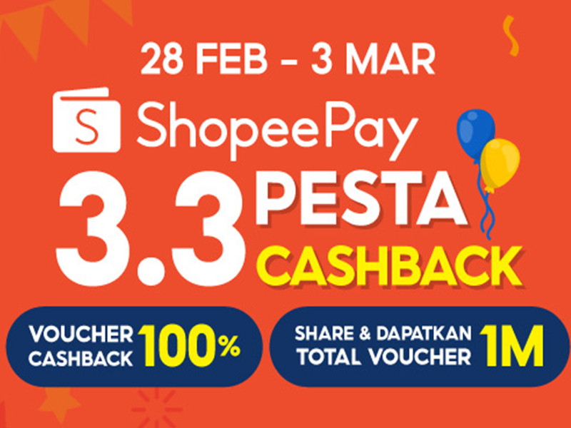 Pengguna dapat menemukan promo voucher cashback 100% dari ratusan merchant makan dan jajan favorit mulai dari tanggal 28 Februari hingga 3 Maret 2021. Selain itu, ShopeePay juga mengajak pengguna membagikan euforia 3.3 Pesta Cashback ShopeePay melalui fitur ‘Share dan Dapatkan’ untuk kesempatan mendapatkan Total Voucher Rp1 Miliar.