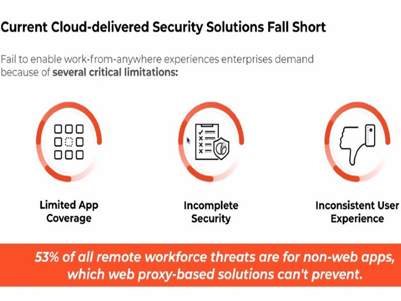 Sementara di sisi lain, keamanan yang dihadirkan di cloud yang ada saat ini memiliki sejumlah keterbatasan, terutama di sisi jangkauan aplikasi yang dilayaninya dan perlindungan yang dihadirkan pun kurang memadai. Padahal, sebanyak 53 persen ancaman keamanan atau threat yang menyasar pekerja jarak jauh merupakan aplikasi-aplikasi nonweb.