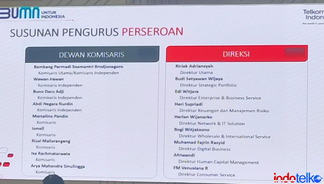Sementara di jajaran direksi hanya terjadi perubahan di Direktur Wholesale & International Service yang pasca RUPST ditempati Bogi Witjaksono. Sebelumnya posisi ini ditempati Dian Rachmawan.
