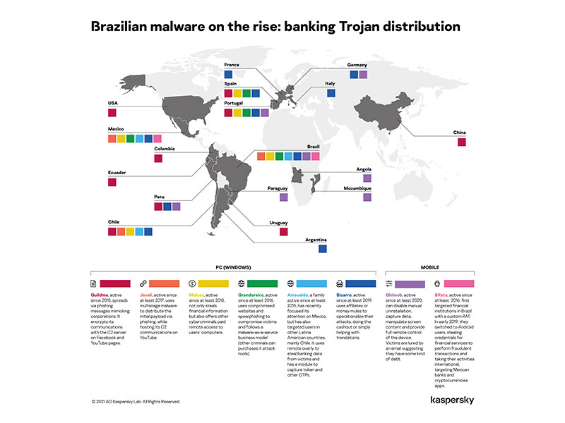 Sebelumnya, peneliti Kaspersky melihat beberapa trojan perbankan dari Amerika Selatan (Guildma, Javali, Melcoz dan Grandoreiro), memperluas operasi mereka ke seluruh dunia. Secara kolektif diakui sebagai