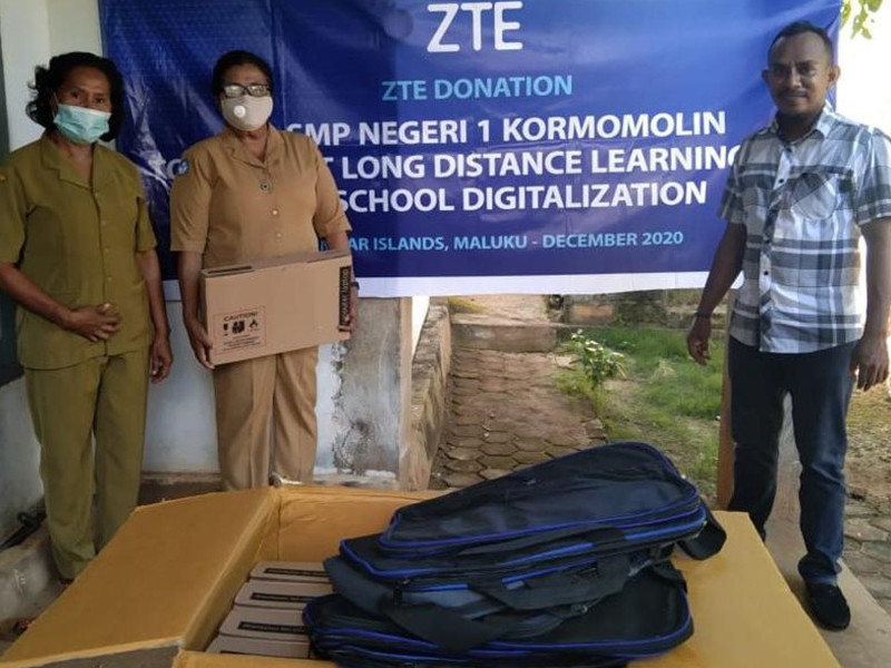 Pemberian bantuan kepada SMPN 1 Kormomolin, Kepulauan Tanimbar, Provinsi Maluku sebagai wujud kepedulian ZTE dalam mendorong transformasi digital di sekolah kawasan 3T dan memberikan kemudahan dalam melakukan kegiatan Pembelajaran Jarak Jauh (PJJ) yang menjadi imbauan Pemerintah untuk dilaksanakan guna mencegah penyebaran Covid-19.