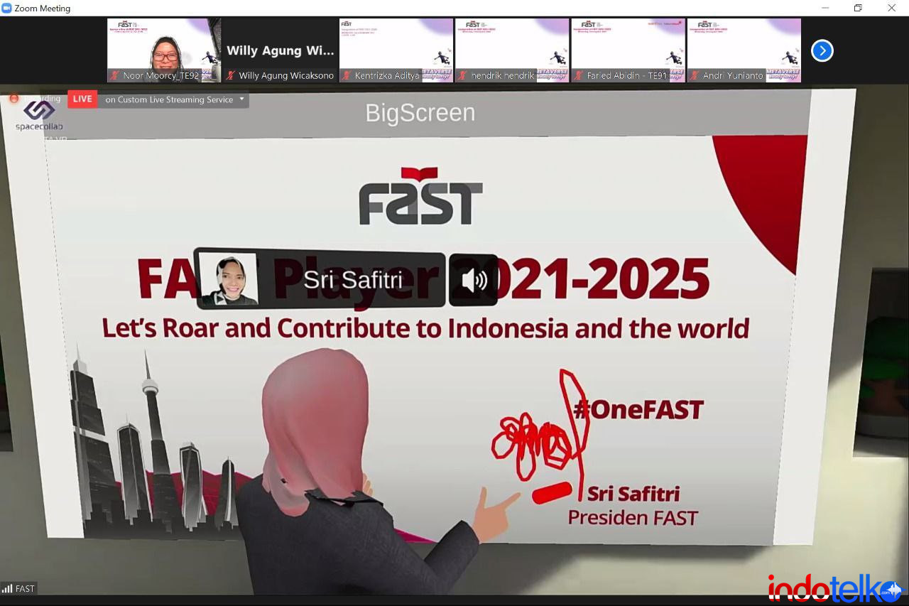 Presiden FAST 2021-2025 Sri Safitri mengatakan Metaverse merupakan perkembangan teknologi yang dalam waktu dekat akan masif digunakan oleh banyak orang untuk berbagai aktivitas. Misalnya mengadakan meeting, konser musik, bahkan kegiatan pembelajaran dapat dilakukan di Metaverse.