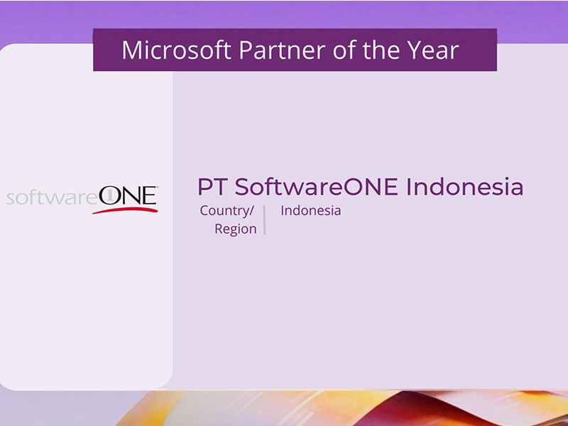 Di Indonesia, SoftwareONE menerima penghargaan sebagai Microsoft Partner of The Year 2022, serta dinobatkan sebagai finalis kategori SAP on Azure. SoftwareONE Indonesia mendapat kehormatan di antara mitra terkemuka Microsoft untuk menunjukan keunggulan dalam inovasi dan implementasi solusi pelanggan berdasarkan teknologi Microsoft. SoftwareONE merupakan penyedia layanan perangkat lunak ujung ke ujung dan solusi teknologi cloud terkemuka di dunia yang berkantor pusat di Swiss dan memiliki cabang tersebar di 90 negara, termasuk Indonesia.