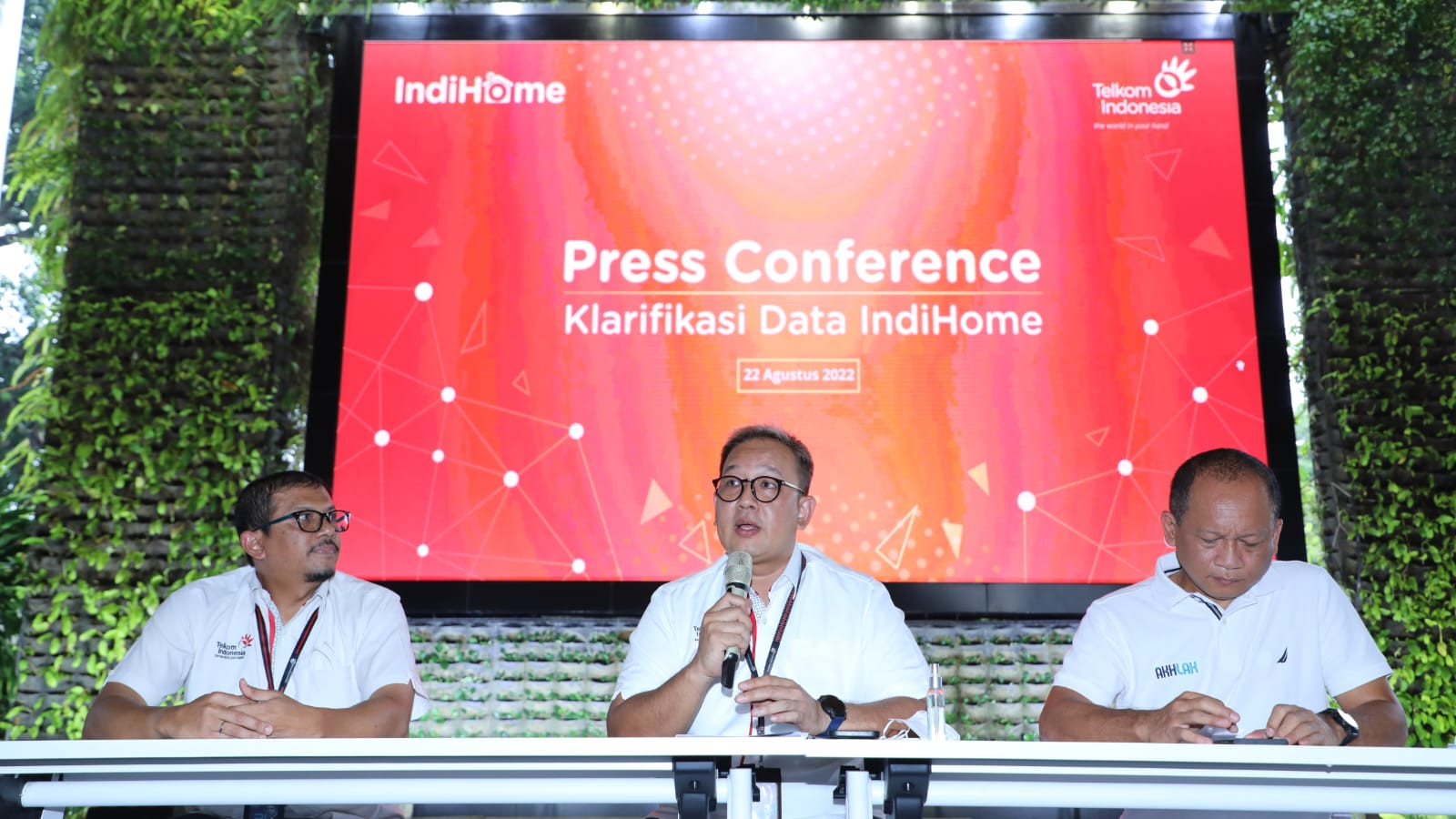 Hal ini disampaikan SVP Corporate Communication & Investor Relation Telkom Ahmad Reza yang didampingi VP Network/IT Strategy, Technology & Architecture Telkom Rizal Akbar (Kiri), dan EGM Divisi Information Technology Telkom Sihmirmo Adi (Kanan) pada Press Conference, di Telkom Landmark Tower, Senin, 22 Agustus 2022.
