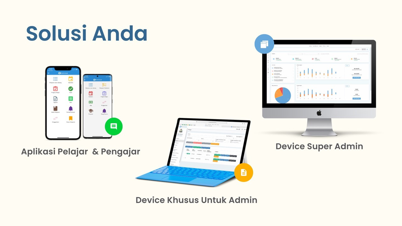 Perusahaan ini mengembangkan sistem manajemen pendidikan dengan beragam fitur yang dapat melayani administrator, guru, orang tua, dan siswa secara efektif. Sistem ini mengintegrasikan administrasi, keuangan, dan komunikasi, sehingga memudahkan mengelola berbagai aspek operasional pusat pembelajaran - mengoptimalkan efisiensi kerja. Fitur tersebut mencakup pengelolaan data guru dan murid, penjadwalan kelas, invoice dan pembayaran, pengelolaan kehadiran murid, dan masih banyak lagi.