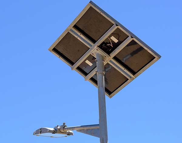 PJU-TS merupakan lampu penerangan jalan yang terintegrasi dengan baterai dan menggunakan cahaya matahari sebagai sumber energi listriknya. Pembangunan PJU-TS ini merupakan salah satu program Kementerian Energi dan Sumber Daya Mineral (ESDM) terkait aspek pengendalian penggunaan energi untuk memanfaatkan energi baru terbarukan (EBT).