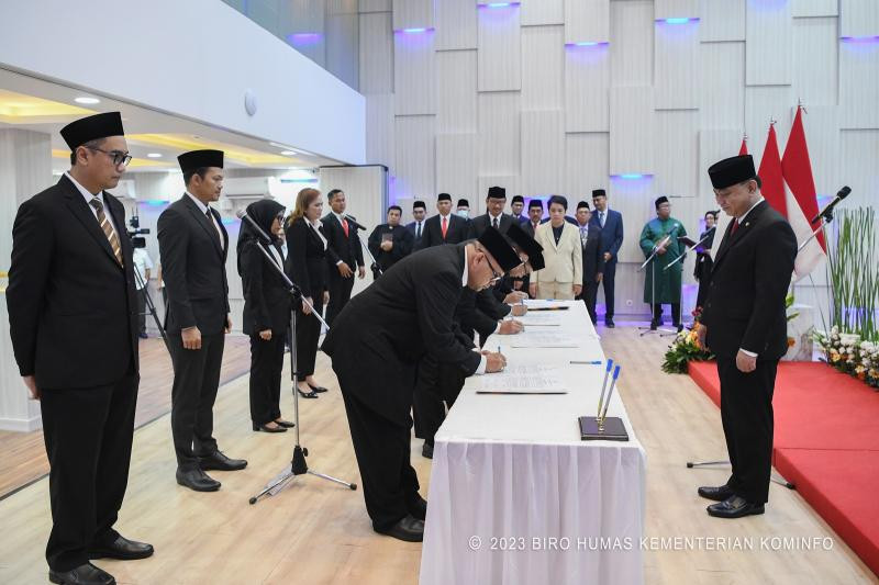 Pada acara pelantikan hadir Wamenkominfo Nezar Patria dan Pejabat Tinggi Madya dan Pratama Kementerian Kominfo. Adapun sembilan Pejabat Tinggi Pratama yang dilantik yaitu: Nada Fitria, SE. M.Ak, sebagai Kepala Biro Keuangan Sekretariat Jenderal; Indra Maulana, SH. LLM, sebagai Sekretaris Direktorat Jenderal Penyelenggaraan Pos dan Informatika; Dany Suwardany A., SE, MM, sebagai Direktur Pengendalian Pos dan Informatika Ditjen PPI; Teguh Arifiyadi, SH, MH, sebagai Direktur Pengendalian Aplikasi Informatika, Ditjen Aplikasi Informatika; Aries Kusdaryono, S.Kom, M.Kom, sebagai Direktur Tata Kelola Aplikasi Informatika, Ditjen Aptika; dan Muhammad Arief, SH.MH., sebagai Inspektur II Inspektorat Jenderal.