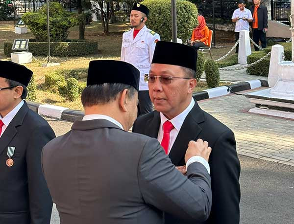 Menkominfo Budi Arie Setiadi menyematkan tanda kehormatan Satyalancana tahun 2023 bidang kominfo saat upacara peringatan Hari Bhakti Postel ke-78. Upacara yang bertema KolaborAksi Digital untuk Indonesia Maju berlangsung di Kantor Pusat PT Pos Indonesia (Persero) Jalan Cilaki, Bandung.