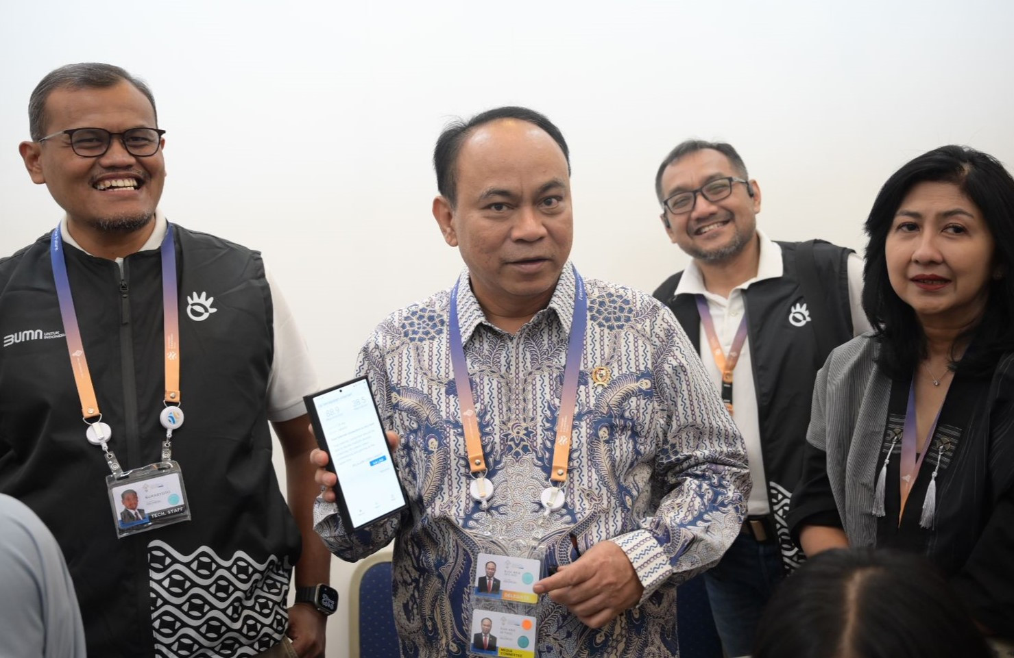 Menkominfo melihat secara langsung akses internet dan perangkat telekomunikasi yang disediakan PT Telkom Indonesia (Persero) Tbk (Telkom) di media center untuk mendukung aktivitas para awak media dalam memproduksi dan mendistribusikan berita, baik nasional maupun internasional. Turut hadir mendampingi Menkominfo dalam kunjungan tersebut, Direktur Jenderal Informasi dan Komunikasi Publik, Usman Kansong serta Direktur Jenderal Sumber Daya dan Perangkat Pos dan Informatika, Ismail.