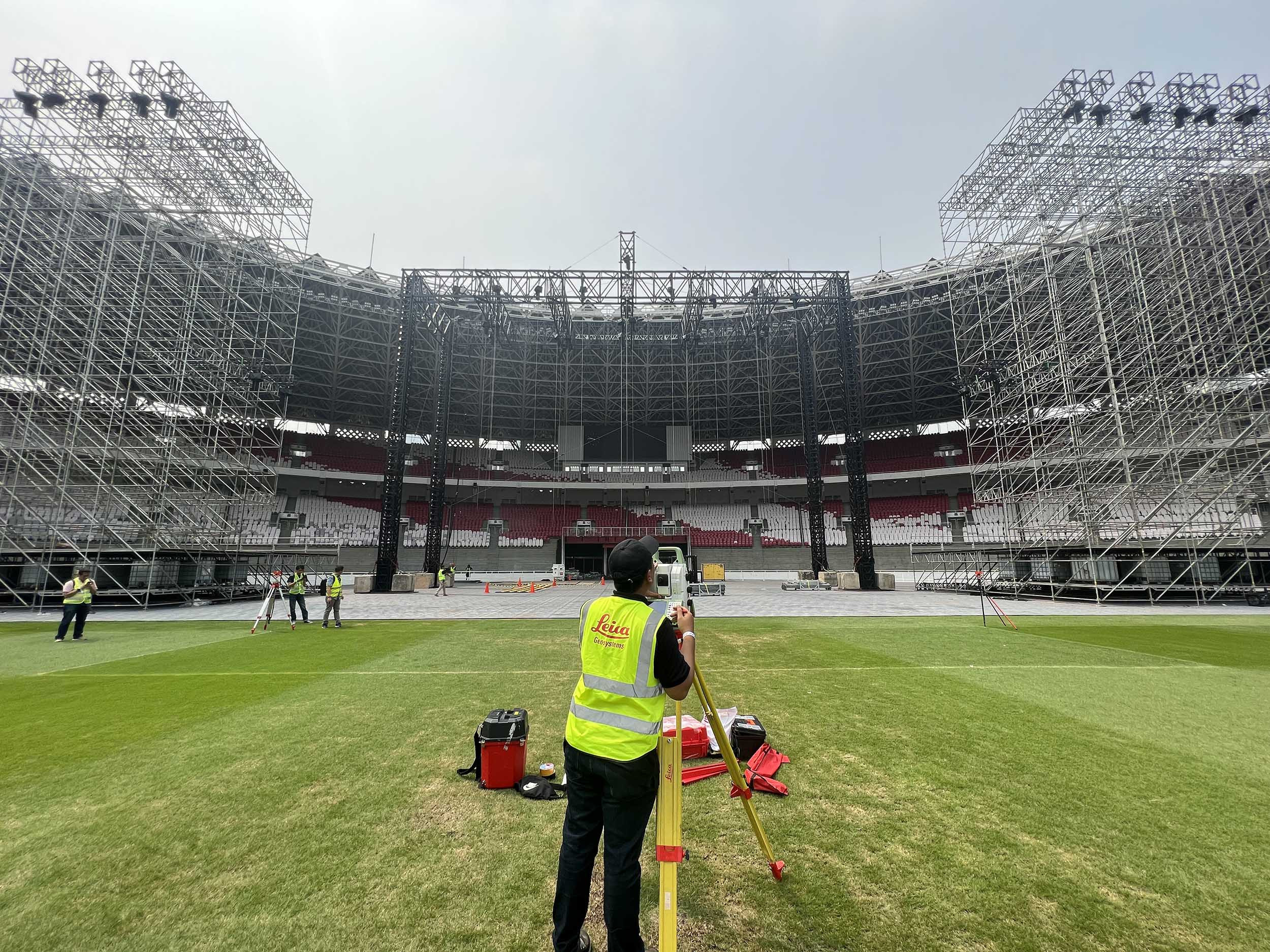 Solusi yang digunakan untuk mendapatkan data pemetaan dan pengukuran di area SUGBK yaitu dengan perangkat survey engineering dari Leica Geosystems, yaitu Leica MS 50, Leica AP20, dan Leica RTC360. Leica MS 50 merupakan alat pengukuran total station yang digunakan untuk mengukur jarak, sudut, dan ketinggian suatu tempat secara akurat. Leica AP20 merupakan perangkat pengukuran dengan sistem autopole sehingga memudahkan proses menentukan lokasi koordinat di lapangan sesuai dengan rencana desain. Sedangkan, Leica RTC360 merupakan scanner 3D portable yang digunakan untuk memindai ukuran area panggung dari berbagai sudut hingga analisis kontur area titik peletakan panggung acara.