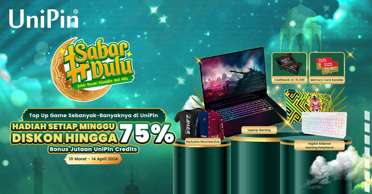 JAKARTA (IndoTelko) - Untuk menemani para gamer selama bulan suci Ramadan 1445 Hijriyah, UniPin telah mempersiapkan rangkaian promo top-up melalui program #SabarDulu Sebar Rezeki Ramadan Anti Halu. Program ini berlangsung sepanjang Ramadan pada 10 Maret hingga 14 April 2024 dan berisikan berbagai promo hasil kolaborasi dengan berbagai penerbit game, sponsor, dan mitra pembayaran UniPin.