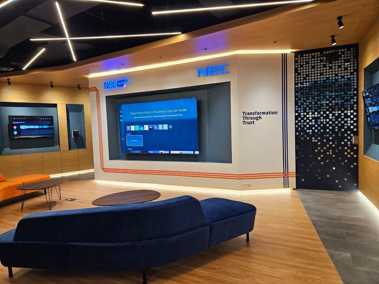 NEC amuse hub., yang merupakan singkatan dariNEC amazing user-centric experience hub., dirancang untuk memberikan pengalaman interaktif dan inspiratif bagi para pengunjung, dengan memamerkan teknologi-teknologi mutakhir dari NEC, termasuk Smart City, Smart Transportation Systems, Multi-modal Biometric Recognition, Submarine Cable System, Smart Manufacturing, dan Cybersecurity.
