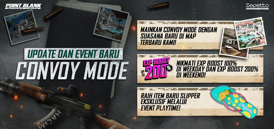 Satu lagi konten terbaru dari Point Blank yang rilis pada minggu ini adalah penambahan map baru untuk mode Convoy, di mana map tersebut bernama Bloody Holiday. Di mode ini, pemain ditantang untuk mengeleminasi musuh dan mengantarkan sebuah koper menuju markas dengan lancar, yang tentunya membutuhkan strategi dan kerjasama tim yang solid untuk meraih kemenangan. Sebelumnya, mode tersebutjuga memiliki map lainnya yang bernama ”Still Raid”.