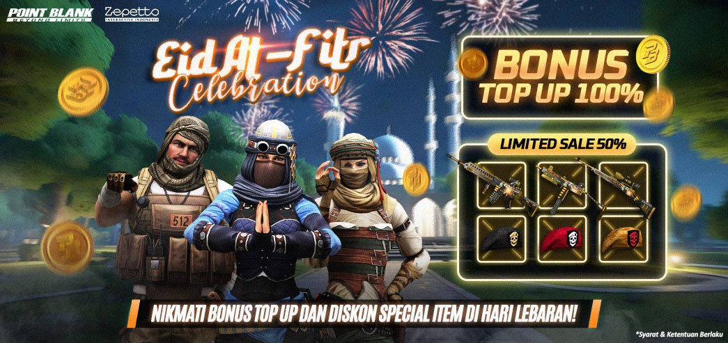 Pada perayaan lebaran tahun ini, Point Blank menghadirkan berbagai kejutan spesial, yaitu bonus top up 100% yang menguntungkan, beragam diskon menarik untuk item-item eksklusif di dalam game, serta dimulainya pre-order Battle Pass terbaru. Dengan berbagai penawaran ini, Troopers dapat merayakan momen spesial lebaran dengan keuntungan berlimpah.